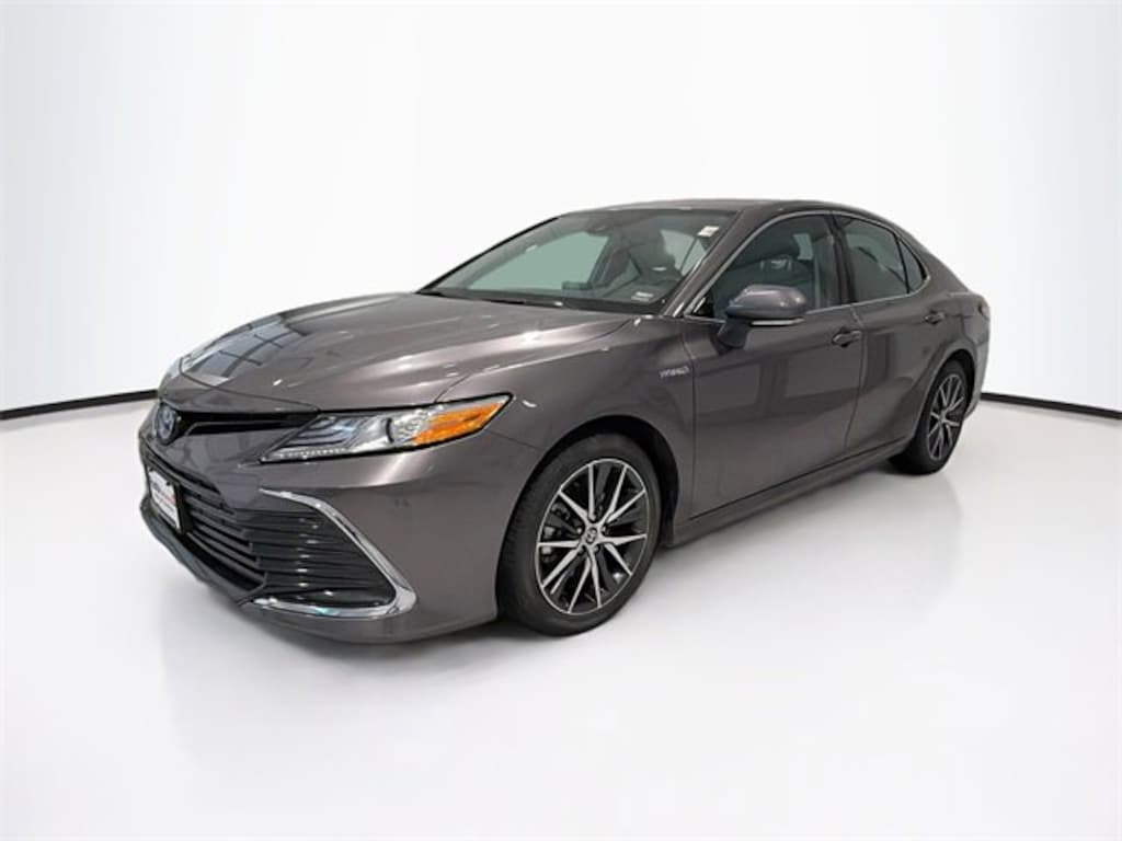 CARFAX One-Owner. Predawn Gray Mica 2021 Toyota Camry Hybrid XLE FWD eCVT 2.5L I4 DOHC 16V Camry Hybrid XLE, 4D Sedan, 2.5L I4 DOHC 16V, eCVT, FWD, Predawn Gray Mica, Ash w/Perforated Leather Seat Trim, Apple CarPlay/Android Auto, Cold Weather Package, Door Edge Guards (TMS), Exterior Parking Camera Rear, Front Bucket Seats, Front dual zone A/C, Heated front seats, Heated Steering Wheel, Perforated Leather Seat Trim, Radio: AM/FM/HD Audio Plus.