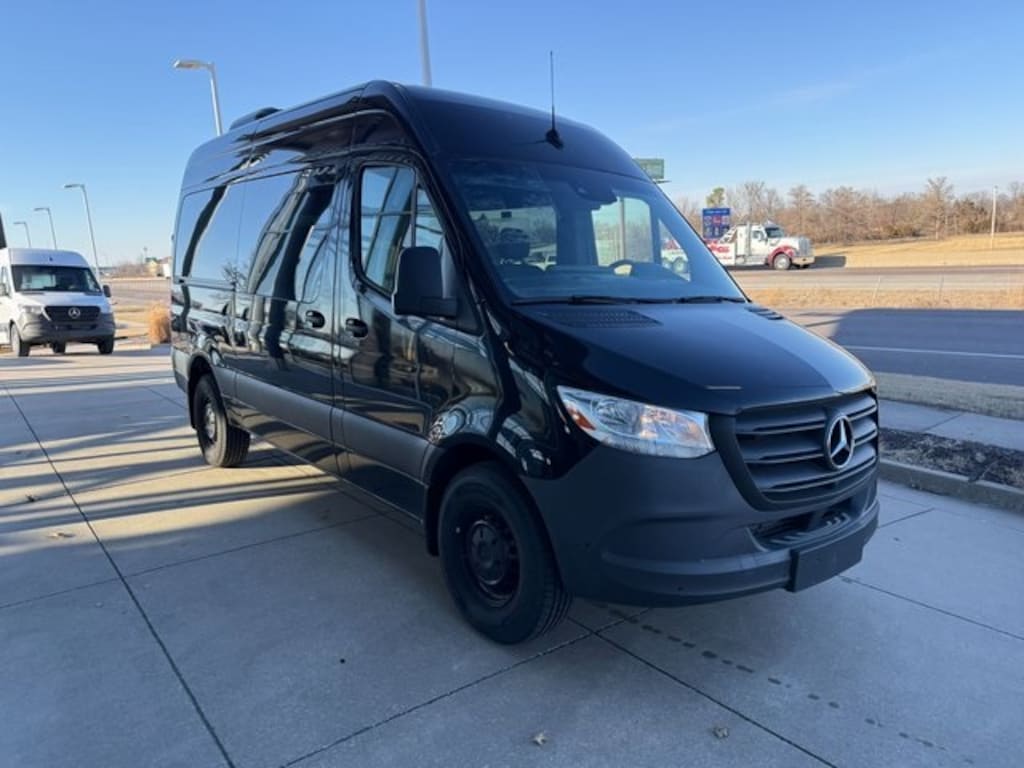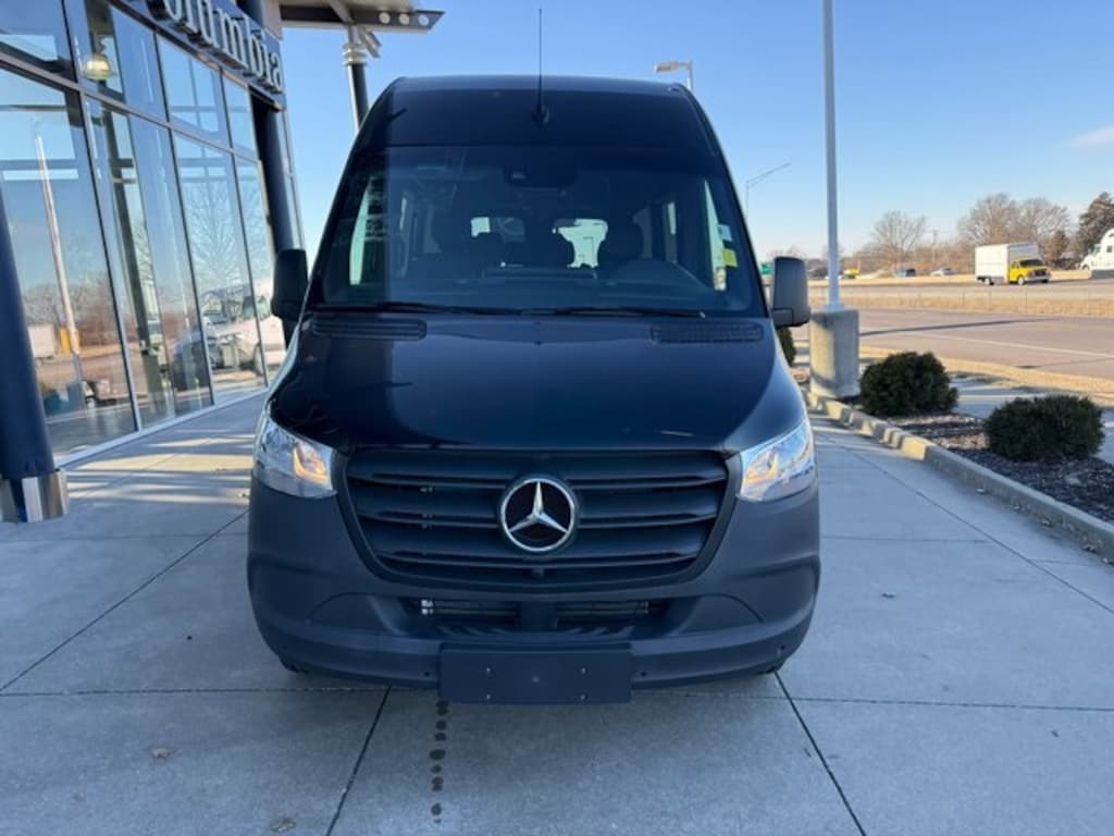 Clean CARFAX. Jet Black 2024 Mercedes-Benz Sprinter 2500 Passenger 144 WB RWD 9-Speed Automatic 2.0L 4-Cylinder Sprinter 2500 Passenger 144 WB, Passenger Van, 2.0L 4-Cylinder, 9-Speed Automatic, RWD, Jet Black, Black w/Leatherette Upholstery, 2 Additional Master Keys, 3rd row seats: bench, 4th-Row Bench Seat, Acoustic Package, Active Lane Keeping Assist, ATTENTION ASSIST®, Blind Spot Assist, Co-Driver Comfort Head Restraint, Co-Driver Seat Lumbar Support, Comfort Driver's Seat, Comfort Overhead Control Panel, Comfort Package, Comfort Package w/Seat Addition, Comfort Passenger's Seat, Convenience Head Restraints for Pass. Compartment, Driver Comfort Head Restraint, Driver Convenience Package, Driver Seat Base 12V Power Outlet, Driver Seat Lumbar Support, Electrically Folding Exterior Mirrors, Exterior Parking Camera Rear, Four-Seater Third-Row Comfort Bench Seat, Heated Driver's Seat, Heated Rear Windows w/Washers & Wipers, Left & Right Storage Compartments Hinged Lid, Parking Package w/360 Degree Camera, Premium Package, Radio: MBUX Multimedia System w/7" Touchscreen, Rain Sensor, Rear air conditioning, Rear Comfort Package, Rims Painted Jet Black, THERMOTRONIC Automatic Climate Control, Three-Seater First-Row Comfort Bench Seat, Three-Seater Second-Row Comfort Bench Seat, Wet Wiper System.