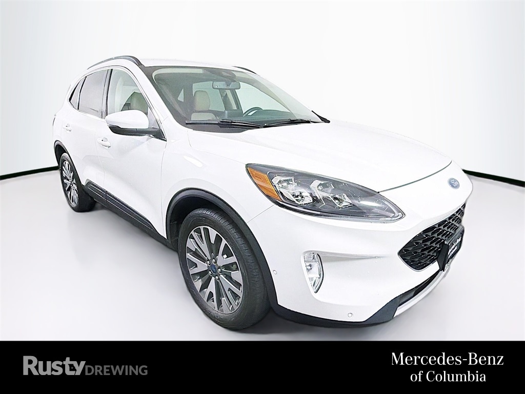 CARFAX One-Owner. White 2020 Ford Escape Titanium AWD 8-Speed Automatic EcoBoost 2.0L I4 GTDi DOHC Turbocharged VCT Back Up Camera, Leather, Heated Seats, Escape Titanium, 4D Sport Utility, EcoBoost 2.0L I4 GTDi DOHC Turbocharged VCT, 8-Speed Automatic, AWD, White, Sandstone Leather, Equipment Group 401A, Exterior Parking Camera Rear, FordPass Connect, Front dual zone A/C, Heated front seats, Heated Leather-Trimmed Front Sport Contour Seats, Heated steering wheel, Radio: B&O Sound System by Bang & Olufsen, SYNC 3 Communications & Entertainment System, Voice-Activated Touchscreen Navigation System, Wireless Charging Pad.
