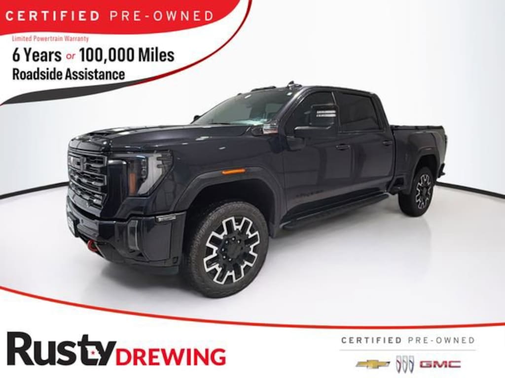 Certified. Titanium Rush Metallic 2024 GMC Sierra 2500HD AT4 4WD 10-Speed Automatic Duramax 6.6L V8 Turbodiesel Sierra 2500HD AAT4, 4D Crew Cab, Duramax 6.6L V8 Turbodiesel, 10-Speed Automatic, 4WD, Titanium Rush Metallic, Jet Black With Kalahari Accents Leather, 10-Way Power Driver Seat Adjuster w/Lumbar, 10-Way Power Passenger Seat Adjuster w/Lumbar, 120-Volt Bed Mounted Power Outlet, 120-Volt Instrument Panel Power Outlet, 2 Charge-Only Rear USB Ports, 2 Charge/Data USB Ports Inside Center Console, 2 USB Ports, 2-Speed Active Transfer Case, Adaptive Cruise Control, Apple CarPlay/Android Auto, AT4 Preferred Package, Bed View Camera w/2 Trailer Camera Provisions, Bose Premium 7-Speaker Sound System, Deep-Tinted Glass, Electric Rear-Window Defogger, Floor-Mounted Center Console, Front Prem Floor Liners w/Removable Carpet Insert, Front Rain-Sensing Wipers, Gloss Black Header Grille & Grille Insert Bars, GMC Connected Access Capable, HD Surround Vision, Heated 2nd Row Outboard Seats, Heated Driver & Front Outboard Passenger Seats, Heated front seats, Heated rear seats, Hill Descent Control, Hitch Guidance w/Hitch View, In-Vehicle Trailering System App, Inside Rearview Auto-Dimming Rear Camera Mirror, Integrated Trailer Brake Controller, Keyless Open & Start, LED Cargo Area Lighting, LED Smoked Amber Roof Marker Lamps, Manual Tilt-Wheel/Telescoping Steering Column, Multicolor 15 Diagonal Head-Up Display, Navigation System, OnStar & GMC Connected Services Capable, Perforated Leather-Appointed Front Seat Trim, Power Front Passenger Windows w/Express Up/Down, Power Sliding Rear Window w/Defogger, Power Sunroof, Preferred Equipment Group 4SB, Push Button Start, Rear Cross Traffic Alert, Rear Prem Floor Liners w/Removable Carpet Insert, Rear Wheelhouse Liners, Remote Vehicle Starter System, Safety Alert Seat, SiriusXM w/360L, Spray-On Bedliner w/AT4 Logo, Steering Wheel Audio Controls, Technology Package, Trailer Cam Provisions & Trailer Viewing Software, Trailer Side Blind Zone Alert, Ultrasonic Front & Rear Park Assist, Unauthorized Entry Theft-Deterrent System, Universal Home Remote, Ventilated Driver & Front Passenger Seats, Wireless Charging, Wireless Phone Projection, X31 Off-Road Package.