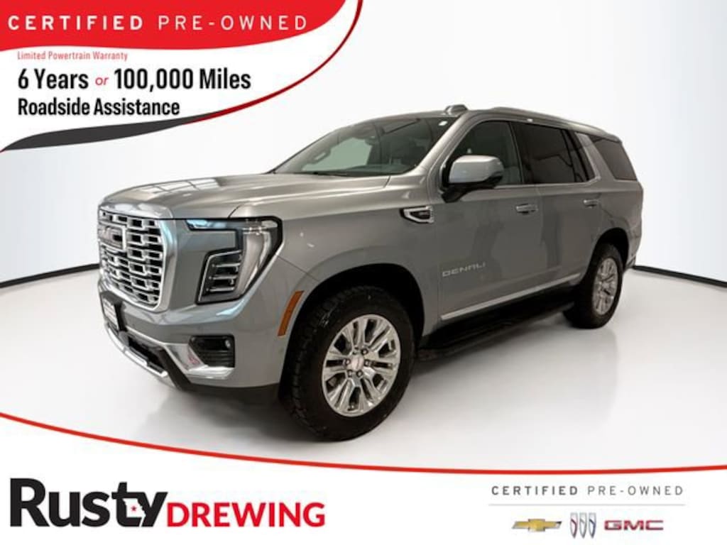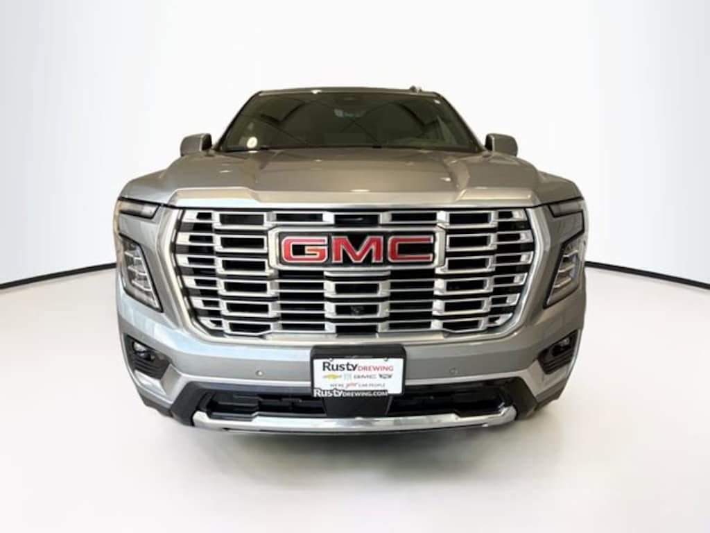 Certified. CARFAX One-Owner. Sterling Metallic 2025 GMC Yukon Denali 4WD 10-Speed Automatic with Overdrive EcoTec3 6.2L V8 Yukon Denali, 4D Sport Utility, EcoTec3 6.2L V8, 10-Speed Automatic with Overdrive, 4WD, Sterling Metallic, Jet Black Leather, 15 Diagonal Multi-Color Head-Up Display, 1st & 2nd Rows Premium Floor Liners (LPO), 3 Years of OnStar Digital Services/Safety Services, 3rd Row All-Weather Floor Liners (LPO), 4-Way Power Driver Lumbar Seat Adjuster, 4-Way Power Front Passenger Lumbar Seat Adjuster, Advanced Security Package, Advanced Technology Package, All-Weather Cargo Mat (LPO), AutoSense Hands-Free Power Liftgate, Blind Zone Steering Assist w/Trailering, Bright Front & Rear Door Sill Plates, Driver Attention Assist, Dual Exhaust System, Dual-Pane Panoramic Power Sunroof, Exterior Parking Camera Rear, Extra Capacity Cooling System, Floor Liner Package (LPO), Galvano Bodyside Moldings, Glass Breakage Sensor, Heated Driver & Front Passenger Seats, Heated steering wheel, Hill Descent Control, Hitch View, Inside Rearview Auto-Dimming Rear Camera Mirror, Integrated Trailer Brake Controller, License Plate Front Mounting Package, Max Trailering Package, Navigation system: GMC Connected Navigation, Perforated Heated & Ventilated Dr & Frt Pass Seats, Perforated Leather Seating Surfaces, Power Liftgate, Power Release 2nd Row Bucket Seats, Power Tilt & Telescopic Steering Column, Preferred Equipment Group 5SA, Rear Seat Media System, Smart Trailer Integration Indicator, Super Cruise, Theft-Deterrent Alarm System, Vehicle Inclination Sensor, Vehicle Interior Movement Sensor, Ventilated front seats.