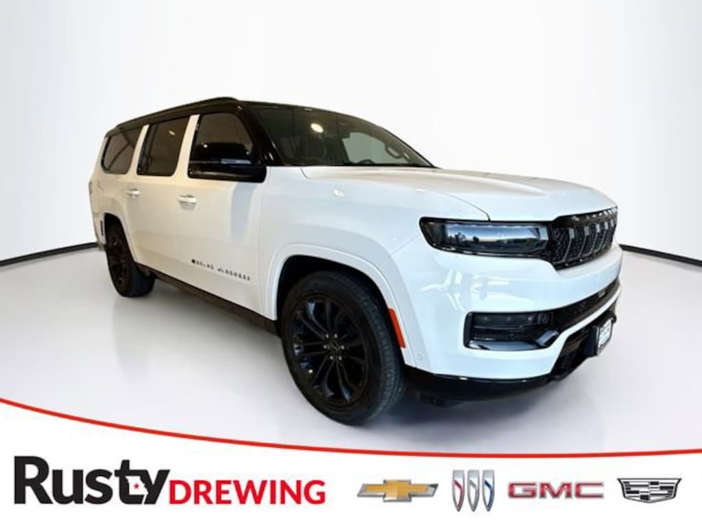 CARFAX One-Owner. Bright White Clearcoat 2023 Jeep Grand Wagoneer L Series III 4WD 8-Speed Automatic 3.0L I6 Grand Wagoneer L Series III, 4D Sport Utility, 3.0L I6, 8-Speed Automatic, 4WD, Bright White Clearcoat, Global Black Leather, 3rd row seats: bench, Adjustable pedals, Black Interior Accents, Black Roof, Gloss Black Upper & Lower DLO Molding, HD Trailer Tow Package, Heated front seats, Heated rear seats, Heated steering wheel, Heavy-Duty Engine Cooling, Navigation System, Obsidian Appearance Package, Piano Black Exterior Accents, Power Liftgate, Power moonroof, Quick Order Package 28T Obsidian, Reclining 3rd row seat, Removable Rear Tow Hook, Trailer Brake Control, Trailer Hitch Zoom, Two Tone Paint Group, Ventilated front seats, Ventilated rear seats, Wheels: 22 x 9.0 Tinted Polished w/Black Insert.