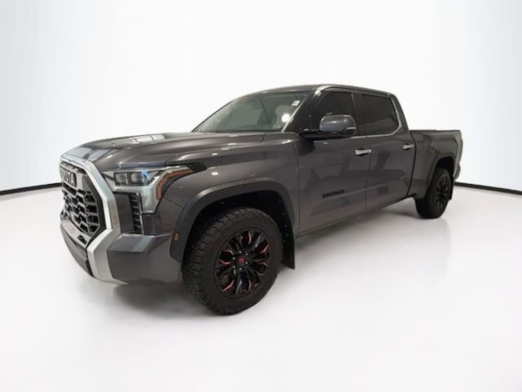 CARFAX One-Owner. Magnetic Gray 2023 Toyota Tundra Limited 4WD 10-Speed Automatic 3.4L V6 Tundra Limited, 4D CrewMax, 3.4L V6, 10-Speed Automatic, 4WD, Magnetic Gray, Boulder Artificial Leather, 120V Deck & Cabin Power Supply, Apple CarPlay/Android Auto, Exterior Parking Camera Rear, Heated front seats, Heated Leather Steering Wheel, High Grade Full LED Headlamp, JBL Premium Audio, Navigation System, Panoramic View Back Monitor, Panoramic View Monitor Package, Power Package, Power Tilt/Slide Panoramic Sunroof, Premium Package, Safety Connect, SofTex Seat Trim, Towing Package, Ventilated front seats, Wireless Charger.