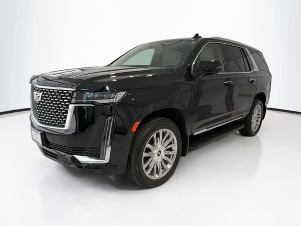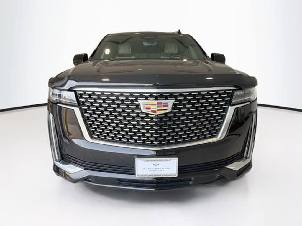 CARFAX One-Owner. Black Raven 2021 Cadillac Escalade Premium Luxury 4WD 10-Speed Automatic with Overdrive 6.2L V8 Escalade Premium Luxury, 4D Sport Utility, 6.2L V8, 10-Speed Automatic with Overdrive, 4WD, Black Raven, Parchment With Jet Black Accents Leather, 16.9 Diagonal OLED Infotainment Screen, 3rd row seats: split-bench, Air Ionizer, AKG Studio 19-Speaker Audio System, Apple CarPlay/Android Auto, Auto tilt-away steering wheel, Automatic Emergency Braking, Door Lock & Latch Shields, Electronic Cruise Control w/Set & Resume Speed, Enhanced Automatic Parking Assist, Front Center Armrest w/Storage, Front dual zone A/C, Glass Breakage Sensor, HD Radio, Heads-Up Display, Heated & Ventilated Driver & Front Passenger Seats, Heated Driver & Front Passenger Seats, Heated front seats, Heated steering wheel, Illuminated Cargo Sill Plate (LPO), Illuminated Front Door Sill Plates (LPO), Illumination Package (LPO), Lane Change Alert w/Side Blind Zone Alert, Lane Keep Assist w/Lane Departure Warning, Mechanical Limited-Slip Differential, Navigation System, Power Liftgate, Power Panoramic Tilt-Sliding Sunroof, Preferred Equipment Group 1SB, Puddle Lamps w/Cadillac Crest (LPO), Radio: AM/FM/SiriusXM w/Navigation, Rear Camera Mirror, Rear Camera Mirror Washer, Rear Cross Traffic Alert, Reconfigurable Full-Color Head-Up Display, Running Board Assist Steps, SiriusXM w/360L, Spoiler, Teen Driver, Theft-Deterrent Alarm System, Vehicle Inclination Sensor, Vehicle Interior Movement Sensor, Ventilated front seats, Wheels: 22 14-Spoke Alloy w/Polished Finish, Wireless Apple CarPlay/Wireless Android Auto.
