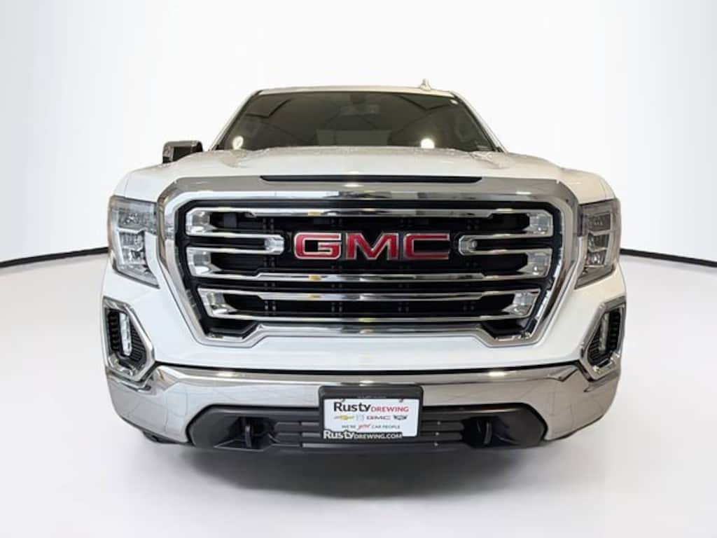 Certified. Summit White 2019 GMC Sierra 1500 SLT 4WD 8-Speed Automatic EcoTec3 5.3L V8 Sierra 1500 SLT, 4D Crew Cab, EcoTec3 5.3L V8, 8-Speed Automatic, 4WD, Summit White, Jet Black Leather, 10-Way Power Driver Seat Adjuster w/Lumbar, 10-Way Power Passenger Seat Adjuster w/Lumbar, 12-Volt Rear Auxiliary Power Outlet, 120-Volt Bed Mounted Power Outlet, 120-Volt Instrument Panel Power Outlet, 170 Amp Alternator, 2 USB Ports, 2 USB Ports (1st Row), Apple CarPlay/Android Auto, Auxiliary External Transmission Oil Cooler, Chrome Grille, Color-Keyed Carpeting Floor Covering, Compass, Deep-Tinted Glass, Dual Exhaust w/Premium Tips, Electric Rear-Window Defogger, Electrical Lock Control Steering Column, Floor Mounted Console, Front Bucket Seats, Front dual zone A/C, Front Frame-Mounted Black Recovery Hooks, GMC 4G LTE, GMC Connected Access, HD Radio, Heated 2nd Row Outboard Seats, Heated Driver & Front Passenger Seating, Heavy-Duty Rear Locking Differential, High-Capacity Air Filter, Hill Descent Control, Hitch Guidance, Hitch Guidance w/Hitch View, In-Vehicle Trailering App, Integrated Trailer Brake Controller, Keyless Open & Start, LED Cargo Area Lighting, Manual Tilt-Wheel & Telescoping Steering Column, Off-Road Suspension, OnStar & GMC Connected Services Capable, Power Door Locks, Power Front Passenger Windows w/Express Up/Down, Power Front Windows w/Driver Express Up/Down, Power Rear Windows w/Express Down, Power Sliding Rear Window w/Rear Defogger, Power Sunroof, Preferred Equipment Group 4SA, Premium audio system: GMC Infotainment System, Rear Dual USB Charging-Only Ports, Rear Wheelhouse Liners, Remote Vehicle Starter System, SLT Convenience Package, Steering Wheel Audio Controls, Theft Deterrent System (Unauthorized Entry), Trailering Package, Universal Home Remote, Ventilated Driver & Front Passenger Seats, X31 Hard Badge, X31 Off-Road Package.